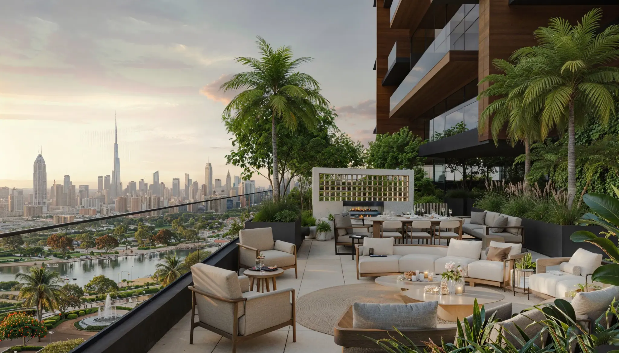 Each apartment features high-quality modern finishes, fully furnished interiors, equipped kitchens, and integrated smart home systems, ensuring a seamless and contemporary lifestyle. Large windows open up to stunning views of Dubai’s skyline and lush green surroundings, creating a perfect balance between urban sophistication and peaceful living.